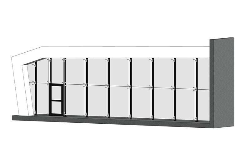 La transparence et la légèreté des parois en VEA laissent apparaître les éléments porteurs internes, ce qui donne un aspect de haute technologie à l’édifice. Ce principe technique est idéal pour des murs rideaux, verrières, auvent.